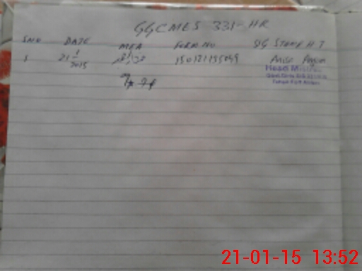 | Monitoring Date: 21-01-2015 | Start Time: 21-01-2015 01:20 PM | End Time: 21-01-2015 01:55 PM | Name of MEA: Mu**** ah**** BN**** 29 | |