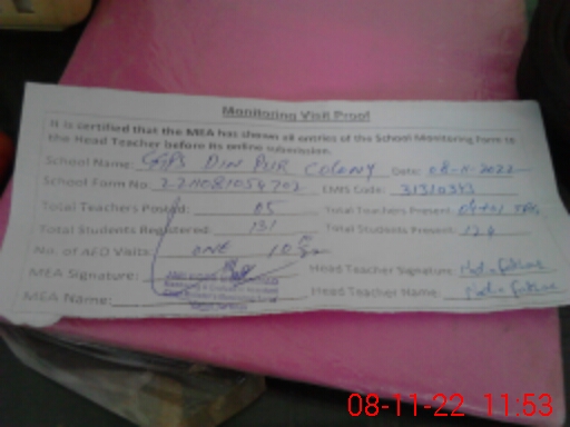 | EMIS Code: 31310343 | Name of School: GGPS DIN PUR COLONY | |||