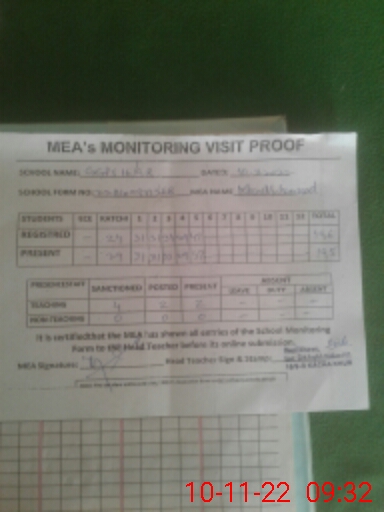 | Attendance Register | Head Teacher | MEA with School | Visit Proof |