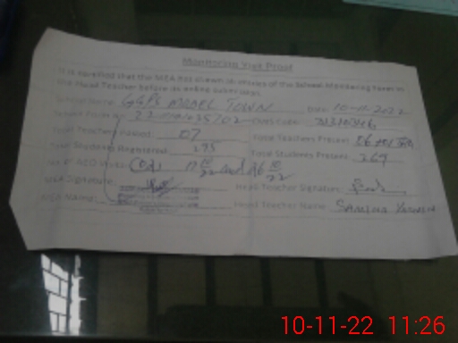 | Attendance Register | Head Teacher | MEA with School | Visit Proof |