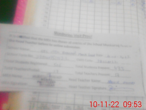 | Attendance Register | Head Teacher | MEA with School | Visit Proof |
