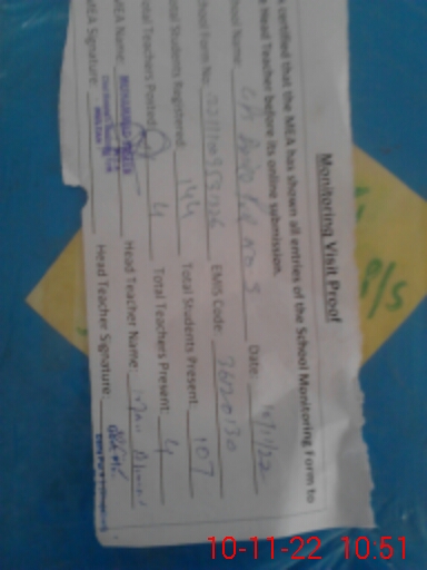 | Name: IR**** AH**** Designation: (School Headmaster's/Headmistress's) HEADMASTER Phone/Cell Number: 03**** |