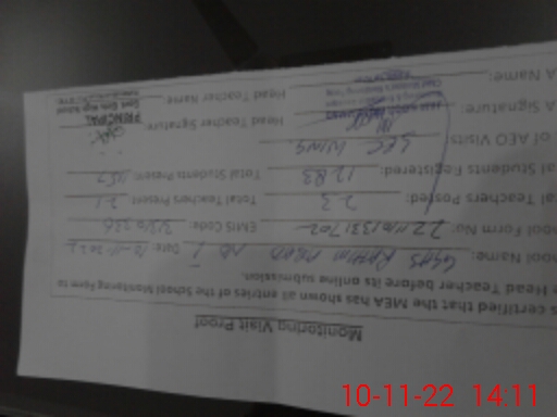 | Attendance Register | Head Teacher | MEA with School | Visit Proof |