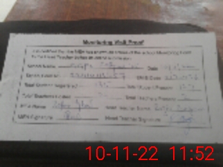 | Monitoring Date: 10-11-2022 | Start Time: 10-11-2022 11:40 AM | End Time: 10-11-2022 11:53 AM | Name of MEA: Za**** Iq**** BN**** | |