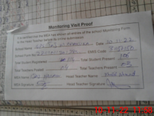 | EMIS Code: 31150150 | Name of School: GPS TAJ MEHMOOD CHAKUKA | |||