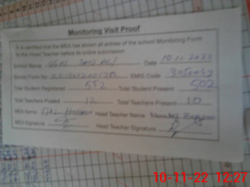 | EMIS Code: 31150043 | Name of School: GGHS SAID ALI | |||
