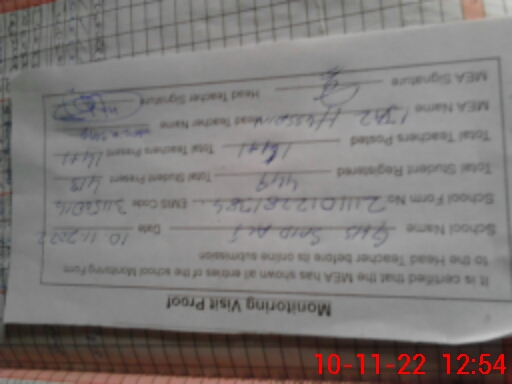 | Remarks (Use Separate Page if Required): Teacher g nabi est present in school | |||||