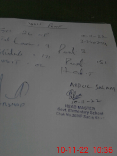 | Name: AB**** SA**** Designation: (School Headmaster's/Headmistress's) S.S.T.(SC) Phone/Cell Number: 03**** |