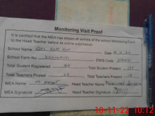 | EMIS Code: 31150021 | Name of School: GES RATTI RAM | |||