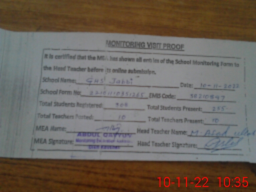 | EMIS Code: 38210897 | Name of School: GHS JABBI | |||
