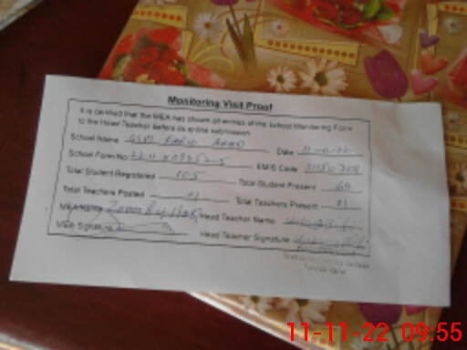 | Attendance Register | Head Teacher | MEA with School | Visit Proof |