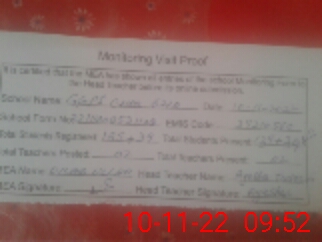 | Attendance Register | Head Teacher | MEA with School | Visit Proof |