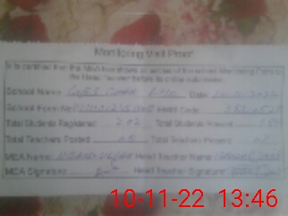 | Attendance Register | Head Teacher | MEA with School | Visit Proof |