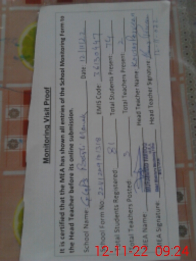 | Attendance Register | Head Teacher | MEA with School | Visit Proof |