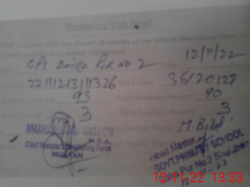 | EMIS Code: 36120129 | Name of School: GPS DAIRA PUR NO. 2 SHUJA ABAD | |||