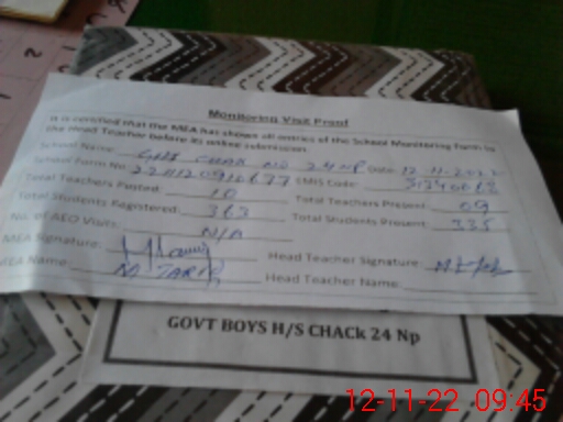 | EMIS Code: 31340068 | Name of School: GHS CHAK NO. 24 NP | |||