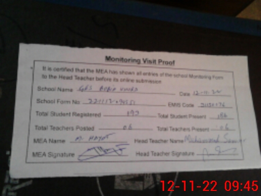 | Attendance Register | Head Teacher | MEA with School | Visit Proof |