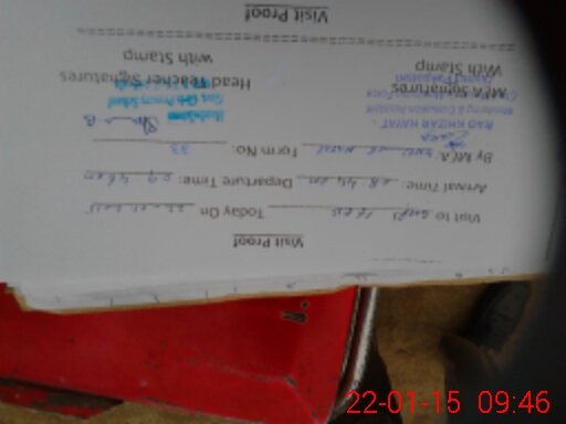 | School Visited by School Health & Nutrition Supervisor (No. of Visits) | 1 | Name1: | M MUBASHIR JAMIL | Name2: | |