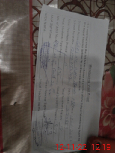 | Certified that this School was Inspected by the Undersigned MEA/DMO Today and the Information Stated Above is as Per Record. | |||||