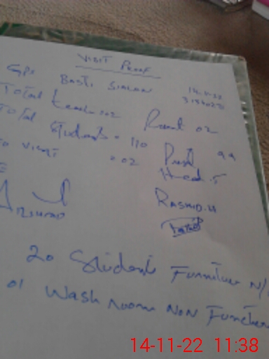 | Attendance Register | Head Teacher | MEA with School | Visit Proof |
