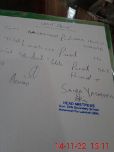 | EMIS Code: 31340096 | Name of School: GGHS MUHAMMAD PUR LAMMA | |||