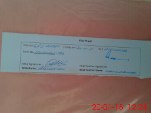 | Attendance Register | Head Teacher | MEA with School | Visit Proof |