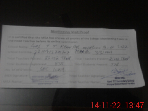 | EMIS Code: 31310004 | Name of School: GHS TT KHANPUR MODEL TOWN B KHANPUR | |||