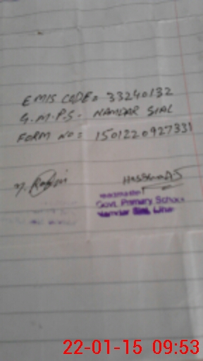 | Name: MU**** AL**** Designation: (School Headmaster's/Headmistress's) PST Phone/Cell Number: 03**** |