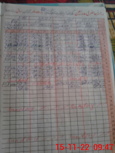 | CNIC | Full Name | Designation | R/C | Absence During Last Calender Month |
