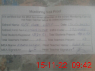 | Attendance Register | Head Teacher | MEA with School | Visit Proof |