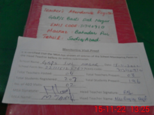 | EMIS Code: 31340910 | Name of School: GGPS BASTI SIAL NAGAR | |||
