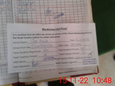 | Attendance Register | Head Teacher | MEA with School | Visit Proof |