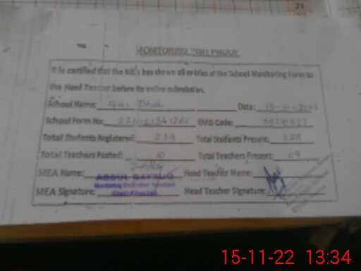 | EMIS Code: 38210827 | Name of School: GHS DHAK | |||