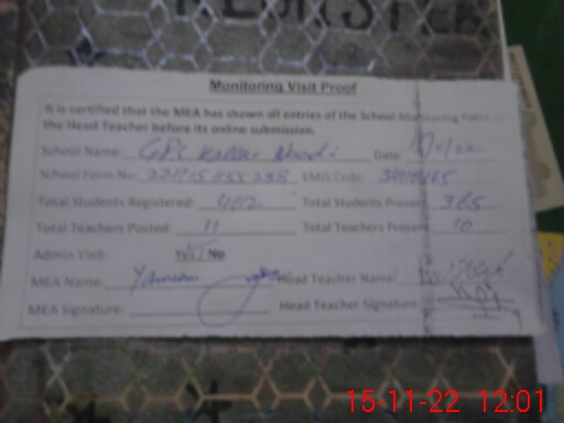 | Name: Ka**** Ab**** Designation: (School Headmaster's/Headmistress's) PST Phone/Cell Number: 03**** |
