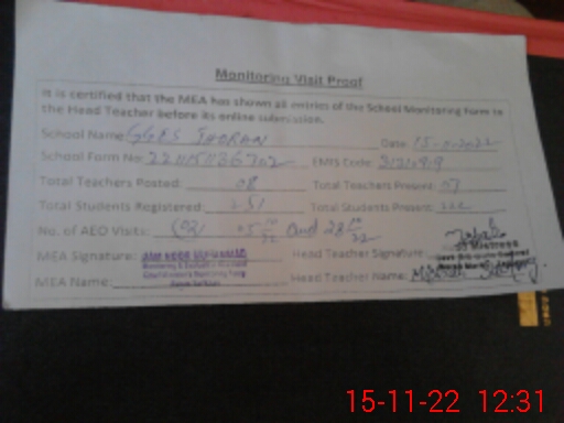 | EMIS Code: 31310919 | Name of School: GGHS JHORAN | |||