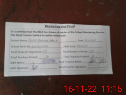 | Attendance Register | Head Teacher | MEA with School | Visit Proof |