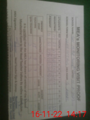 | Attendance Register | Head Teacher | MEA with School | Visit Proof |