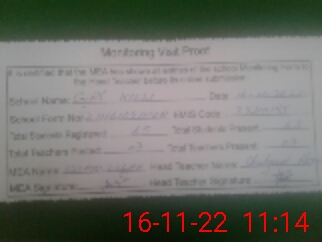 | Attendance Register | Head Teacher | MEA with School | Visit Proof |