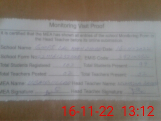 | Attendance Register | Head Teacher | MEA with School | Visit Proof |
