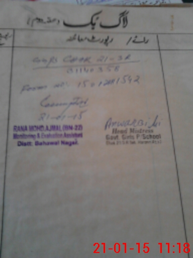 | District: BAHAWALNAGAR | Tehsil: HAROONABAD | Markaz: HND-6-FEMALE | Level: Primary | |