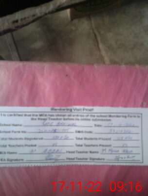 | Attendance Register | Head Teacher | MEA with School | Visit Proof |