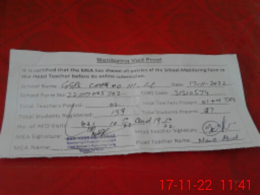 | Certified that this School was Inspected by the Undersigned MEA/DMO Today and the Information Stated Above is as Per Record. | |||||