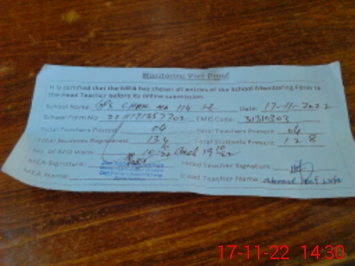 | Attendance Register | Head Teacher | MEA with School | Visit Proof |