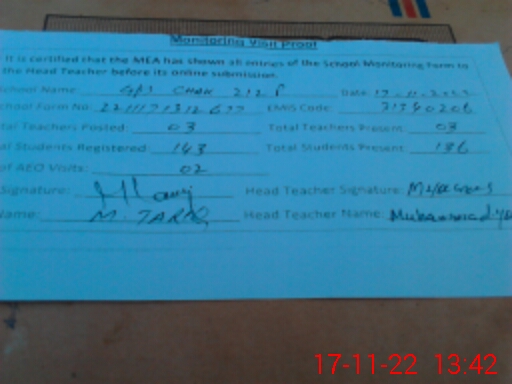 | EMIS Code: 31340206 | Name of School: GPS CHAK NO 212 P | |||