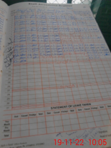 | CNIC | Full Name | Designation | R/C | Absence During Last Calender Month |