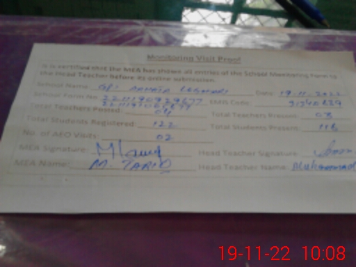 | Certified that this School was Inspected by the Undersigned MEA/DMO Today and the Information Stated Above is as Per Record. | |||||