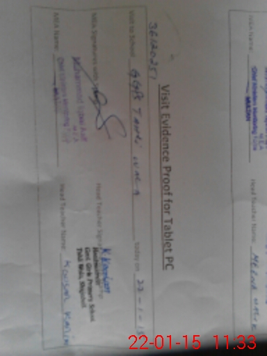 | Attendance Register | Head Teacher | MEA with School | Visit Proof |