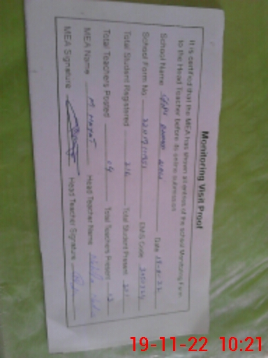 | Attendance Register | Head Teacher | MEA with School | Visit Proof |