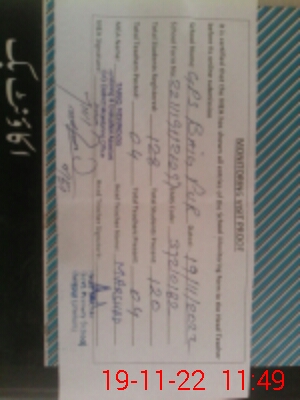 | School Visited by School Health & Nutrition Supervisor (No. of Visits) | 1 | Name1: | QAISAR MEHMOOD | Name2: | |