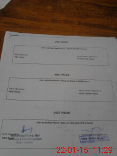 | Attendance Register | Head Teacher | MEA with School | Visit Proof |